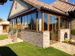 Rámové posuvné zasklenie s izolačným dvojsklom pre príjemný pobyt na terase aj v chladnejšom počasí.